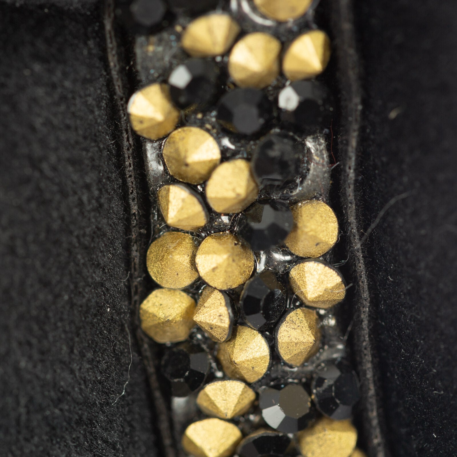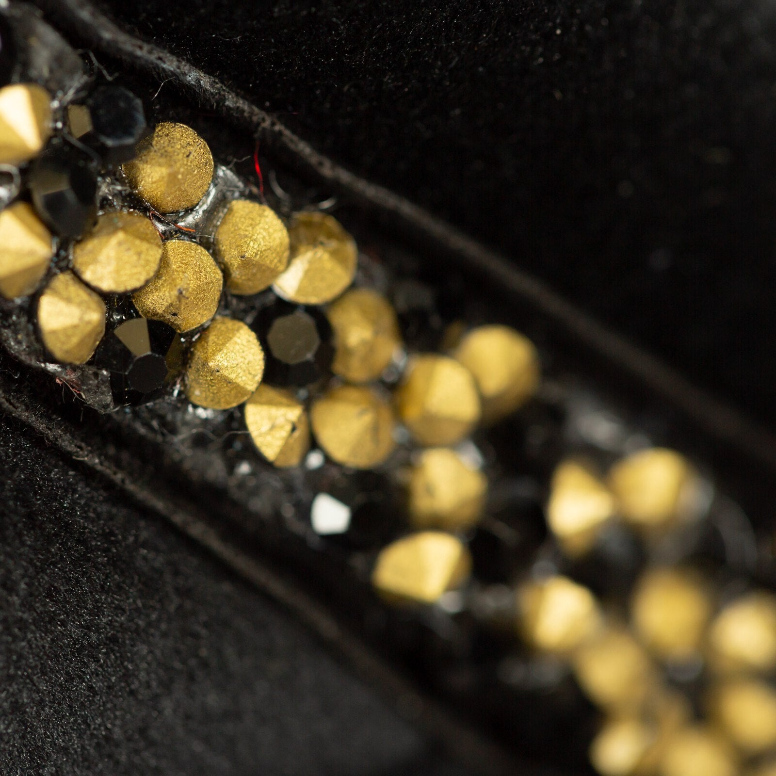 - Black set has a gold-toned crystal embellishment, while the grey set has silver tone