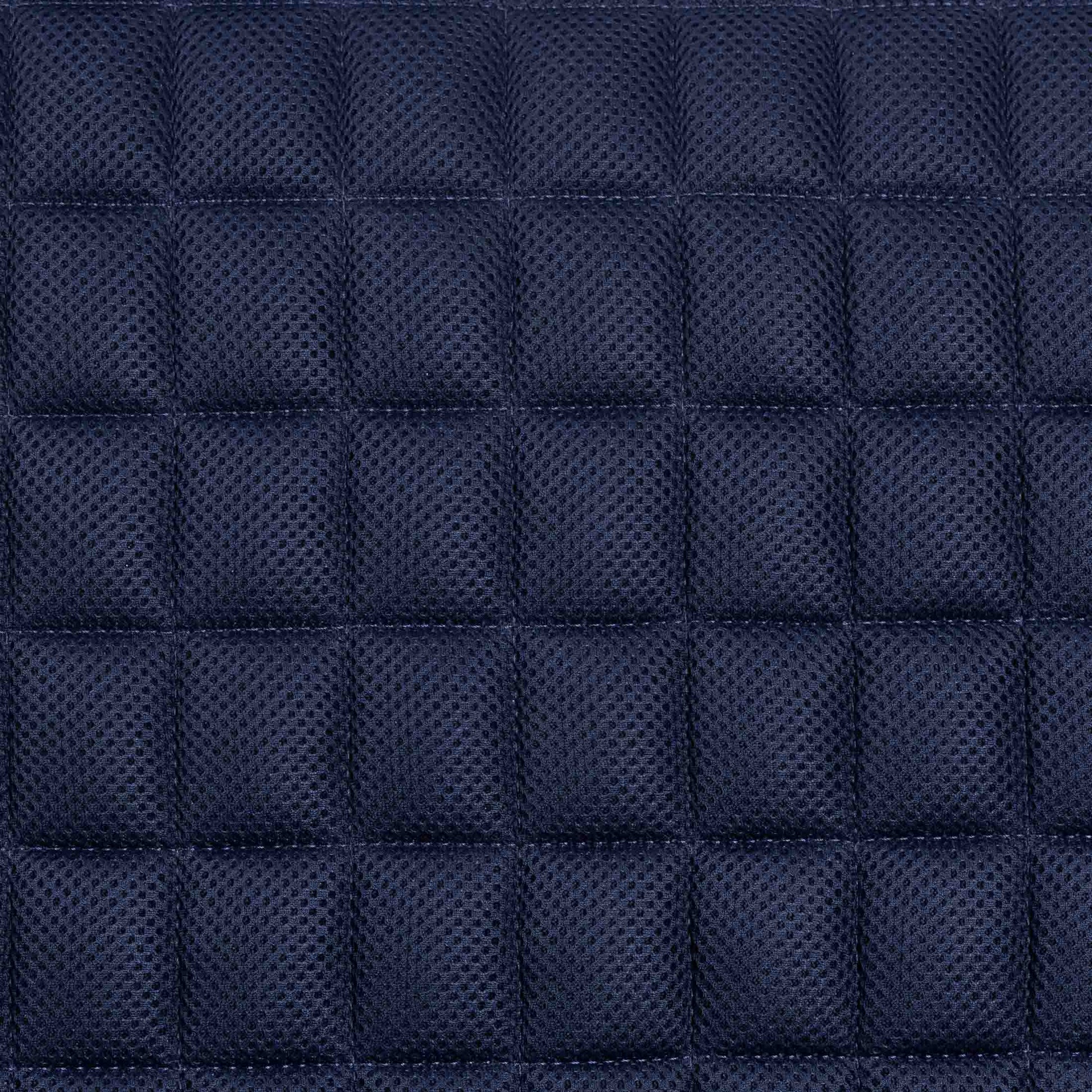The Equinavia Svalbard Dressage Saddle Pad with NordicAir™ Tech offers superior breathability with an all-over mesh design in a classic square quilt pattern. Its contoured shape ensures a secure fit, while the wide mesh spine enhances airflow. It features contrasting trim for a refined look and small D-ring loops on each side for easy attachment.