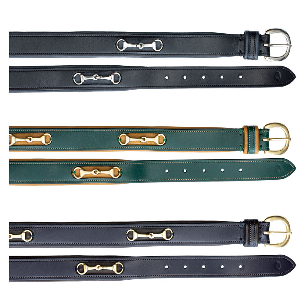 - Full leather belt made in the style of padded leather tack, with soft leather backing and a contrasting full grain overlay