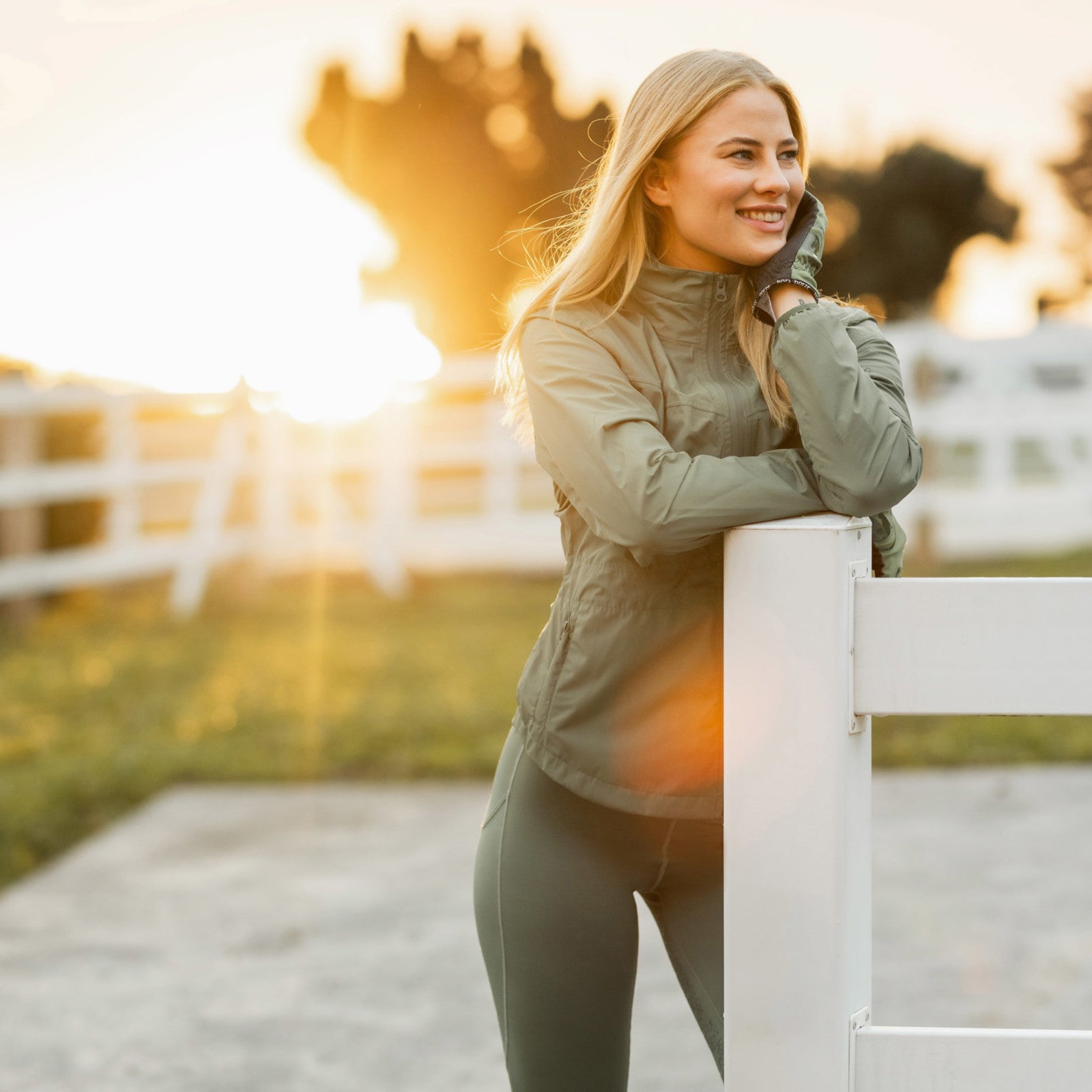 Embrace the elements in our waterproof jacket with taped seams, boasting breathability and enhanced visibility through reflective tonal prints on the sleeve and back hem. The adjustable waist with elastic string ensures a perfect fit, while zipper pockets add practical flair.
