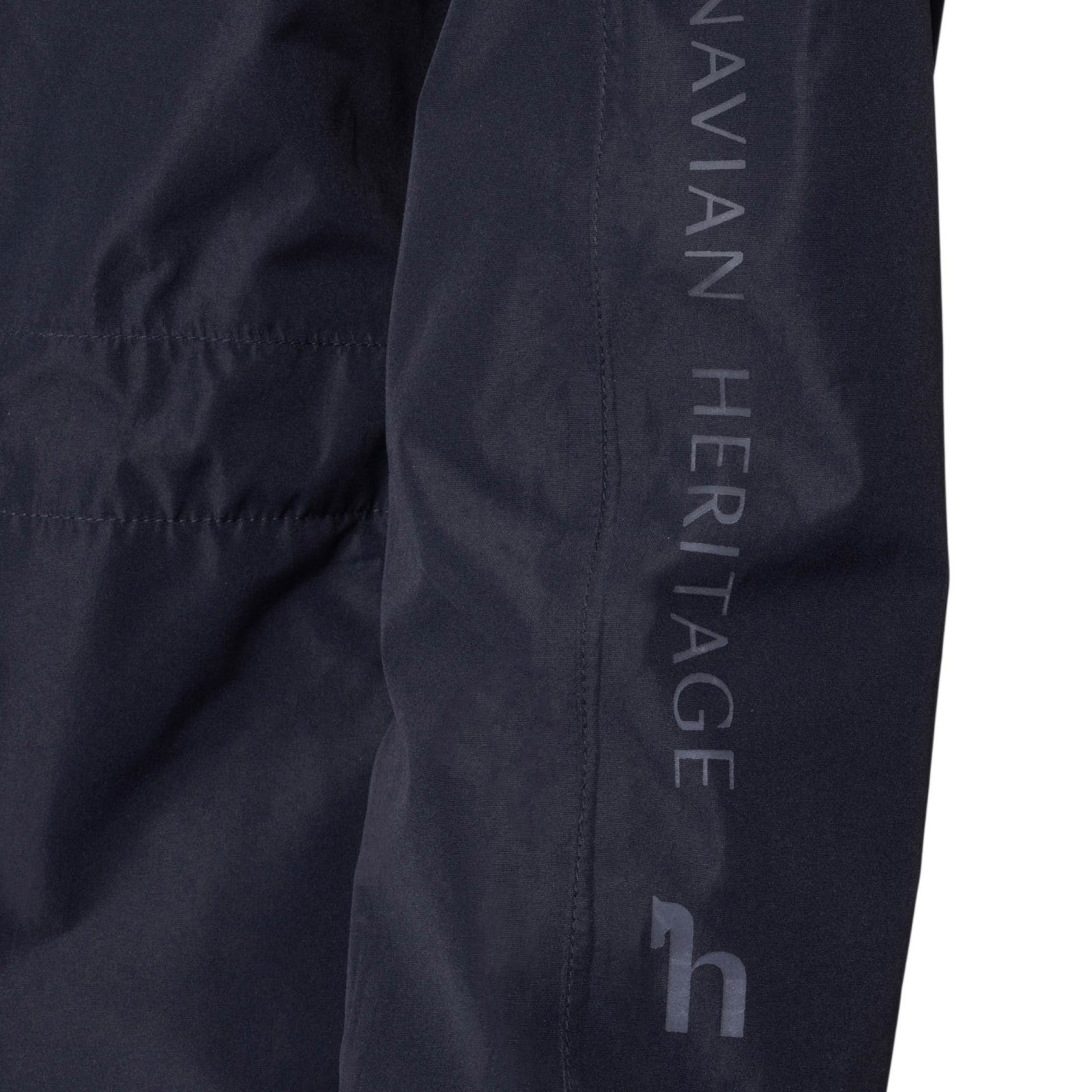 100% polyester, 3000mm/3000mvp waterproof, breathable. Taped seams.