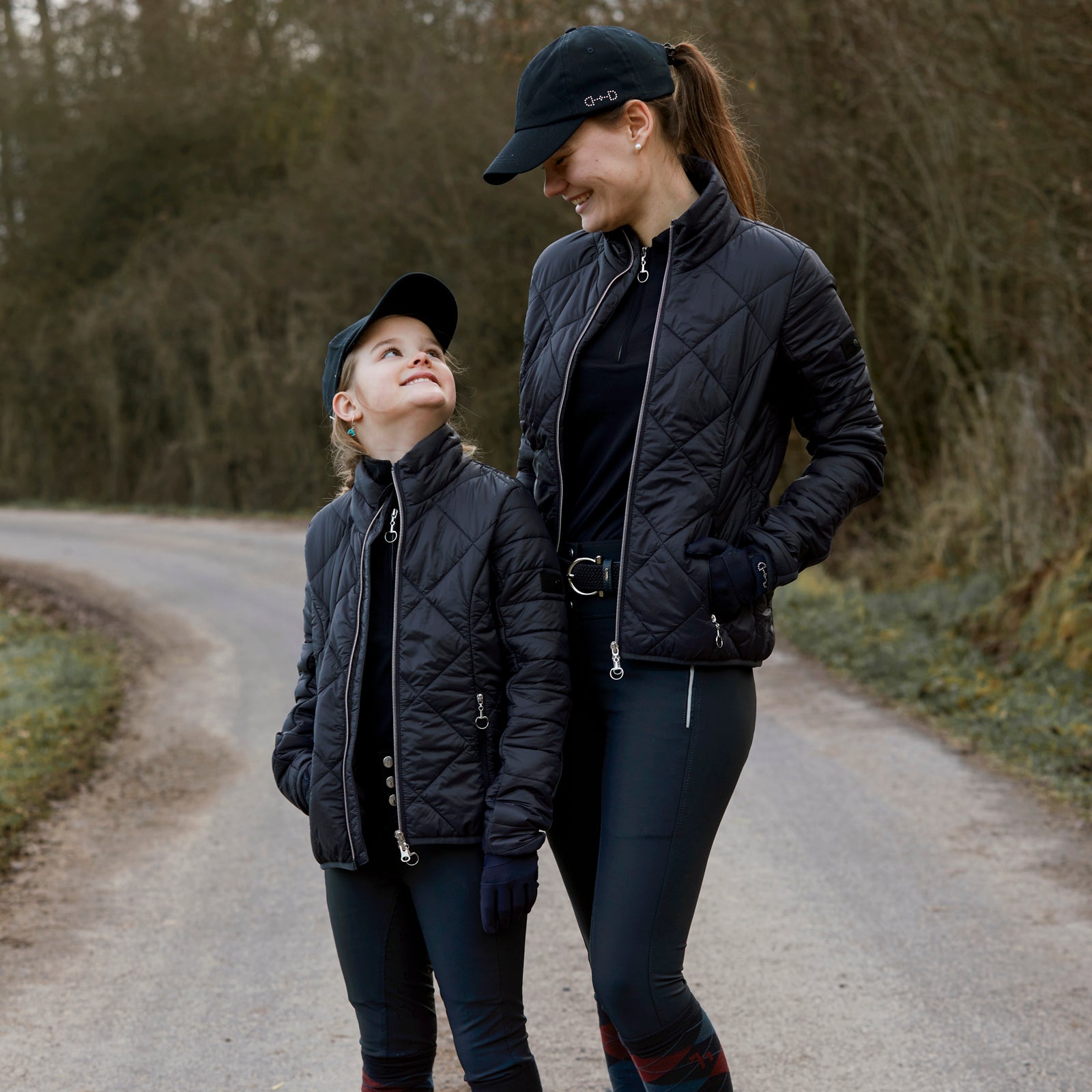 This quilted cap is made from soft cotton, and designed with a quilting effect at the front. The back strap can be adjusted to perfectly fit little riders' heads. Crystal bit detail and shiny logo add subtle glam to this cap.